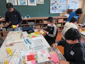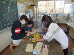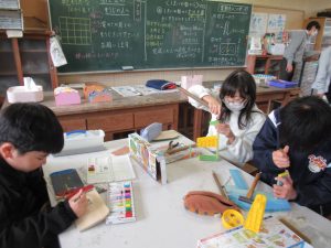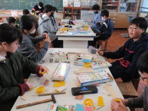 6年 6年図画工作「一枚の板から」 2025.11.28 by e08mg 0 11月28日(金)6年生は図工の授業「一枚の板から」で、セロテープカッターを作成しています。電動のこぎりで好きな形に切って、色を塗って、くぎを打って・・安全に気を付けながら集中して作業に取り組んでいました。完成が楽しみです!