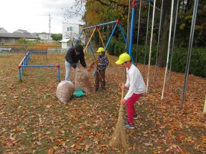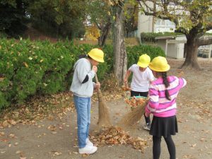 外掃除の子たちが、「枯れ葉を集めても集めてもなくならない」と言っていました。葉が全部落ちるまで大変ですが、一生懸命集めてくれます。ありがとう!