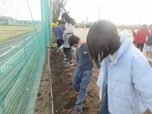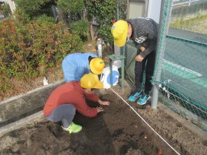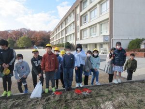 児童会 春花壇にチューリップの球根を植えました 2025.12.19 by e08mg 0 12月19日(金)5,6年生の緑化委員の児童が、メイン花壇にチューリップを植えてくれました。年が明けたら、チューリップの前面にパンジーを植える予定です。