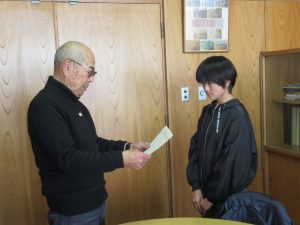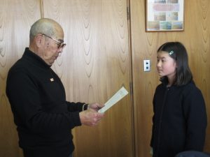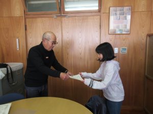 12月22日(月) 連合自治会の方から、ガーデンパートナーの5人の児童に感謝状が授与されました。ガーデンパートナーの児童は、名古屋銀行の交差点そばにある花壇の世話をしてくれています。今日は、一人一人に感謝状と図書カード、記念品が渡されました。5人のみなさん、いつもありがとうございます!