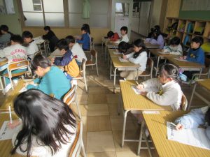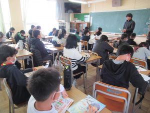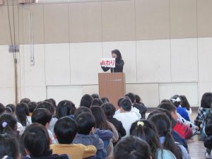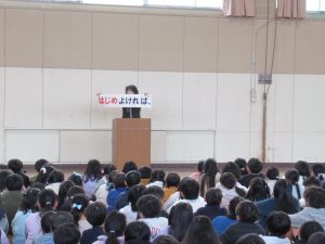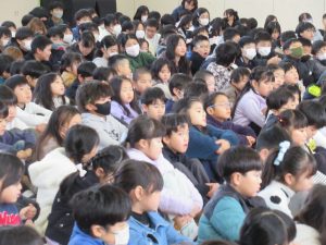 1月7日(水)今日から3学期が始まりました。寒い朝でしたが、子どもたちは元気に登校してくれました。朝の会の後、体育館で始業式を行いました。校長から、自分の目標と学校みんなの目標「3つのあ(あいさつ・安全・ありがとう)」について話がありました。掃除の後の最初の授業「学活」では、冬休みの宿題を集めたり、3学期の目標を決めたり、新しいドリルをもらったりするなど、それぞれの学級で活動しました。