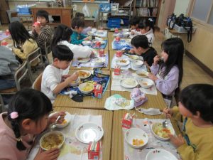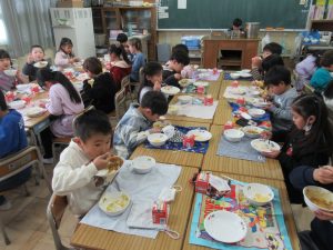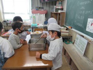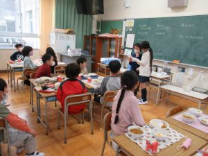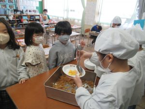 1年 3学期最初の給食 2026.01.08 by e08mg 0 1月8日(木)今日から給食が始まりました。学期始めの給食はカレーライスです。今日はチキンカレーでした。低学年も、給食当番の仕事を自分たちでじょうずに行っています。