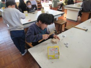 3年 3年図工 初めての金づち 2026.01.14 by e08mg 0 1月15日(木)3年生が図工「トントン どんどん くぎうって」の学習で、木に釘を打っていました。金づちを使うのは初めてなので、どの子も真剣に取り組んでいました!
