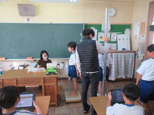 1月15日(木)始業式の次の日から、順番に身体測定を行っています。今日は3年生の日でした。身長と体重を測った後は、養護教諭の先生から、「朝ご飯の大切さ」についてお話がありました。健康的な毎日を送るために「早寝・早起き・朝ご飯」を心がけましょう!