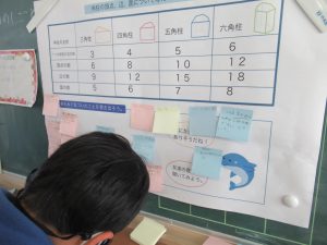1月22日(木)5時間目に、5年生が研究授業を行いました。算数の図形の単元で、「角柱と円柱の秘密を解き明かし、形の国を救おう!」というテーマでマイペース学習に取り組みました。どの子も自分で立てた計画をもとに意欲的に課題に取り組んでいました。子どもたち一人一人の成長した姿を見て、参観した先生たちが感心していました。