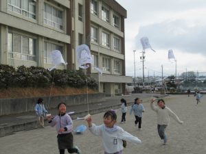 1年 1年 冬を楽しもう 2026.01.23 by e08mg 0 1月23日(金)1年生が生活科「ふゆをたのしもう」の学習で、凧揚げをしました。途中で、友達の凧と糸がからまってしまう子もいましたが、それも経験です!運動場で思い切り冬を楽しみました。