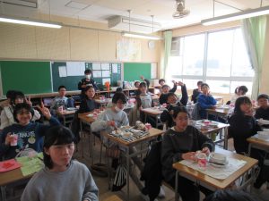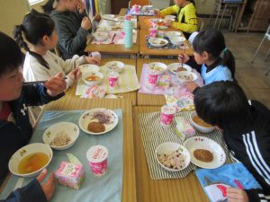 今日のスケッチ 6年生最後の給食 2026.03.17 by e08mg 0 3月17日(火)6年生にとって、今日の給食が、小学校生活最後となります。今日はお赤飯とお祝いケーキが出ました。他の学年の児童もおいしくいただきました!
