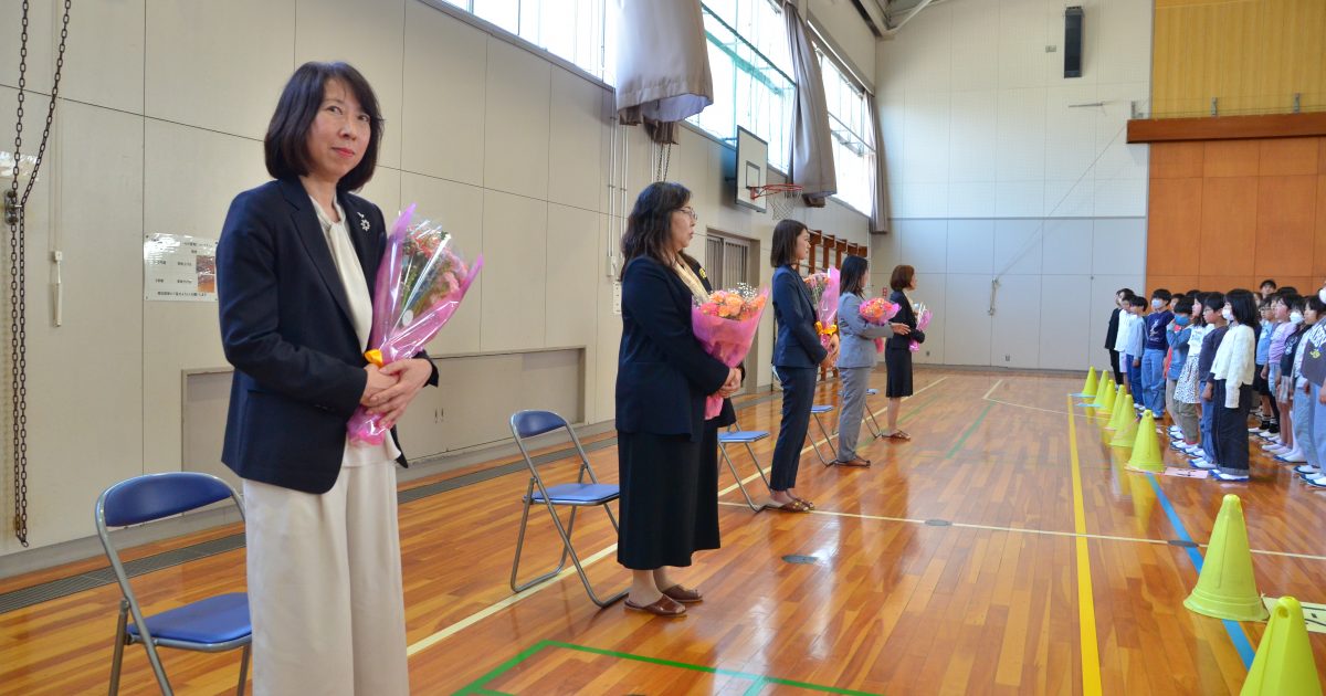 4月16日(木) 離任式が行われました。3月末で本校を去られた先生方をお迎えして、離任式を行いました。お世話になった先生方お一人お一人からお話をしていただきました。その後、感謝の気持ちを込めた花束を代表児童が贈呈し、みん […]
