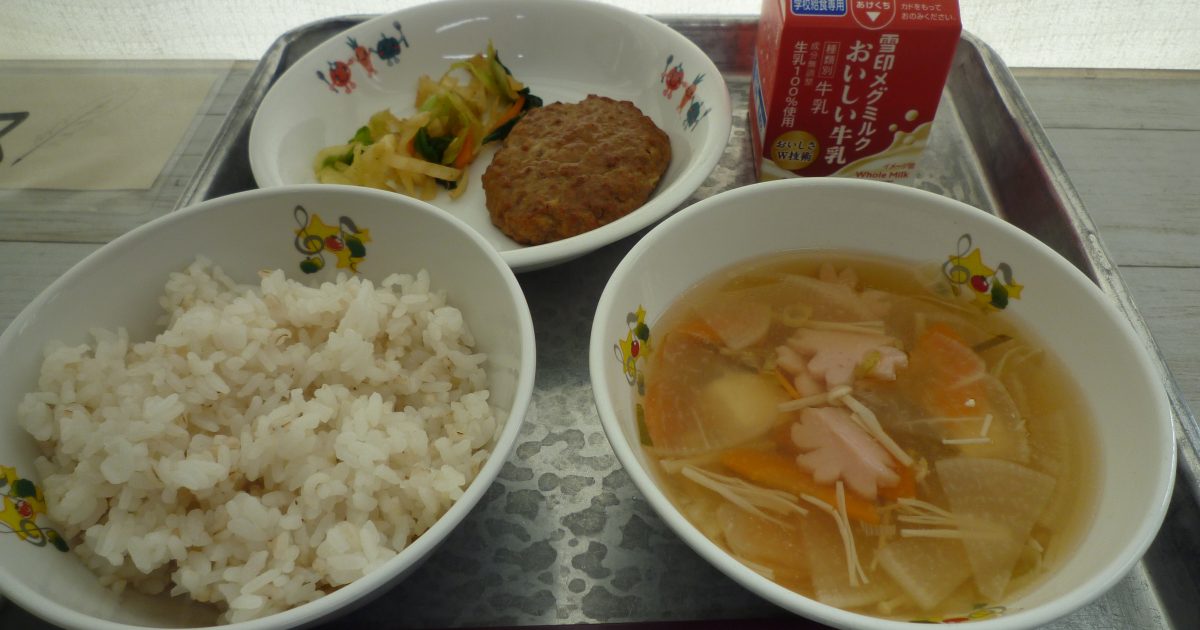 4月14日(火)、2年生から6年生は、今日から給食が開始です。今日のメニューは、麦飯、牛乳、照り焼きハンバーグ、キャベツのおかかあえ、お祝いすまし汁でした。各クラスの給食当番の皆さんも力を合わせて、しっかりと仕事をしてく […]