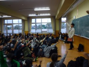 学年主任の先生の合図で右手を挙げ、気持ちをひとつにし、出発式を終わりました。
