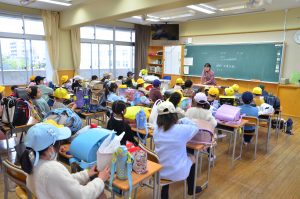 4月10日(金)、第1回通学団会がありました。通学団会は、児童が交通ルールを守り、安全に登下校するために行っています。今日は、通学路・集合場所の確認や雨天時の並び方などを確認しました。また、PTA地域活動部員さんにもご参加いただきました。通学団会終了後には、強い雨が降る中にも関わらず、各通学団と一緒に歩いて、児童の下校を見守ってくださいました。まことにありがとうございました。