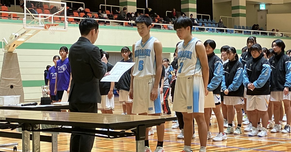 1月9日に愛知県中学生バスケットボール新人大会愛日地区予選会の表彰がありました。男子バスケ部は見事に優勝し、県大会に出場することになりました。引き続き応援をよろしくお願いします!