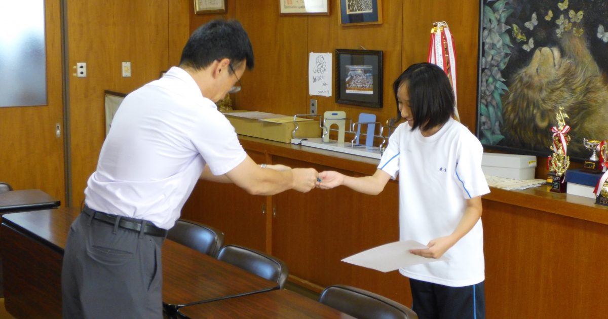 10月1日に第41回名古屋地区中学新人戦陸上競技選手権の表彰がありました。 記録は、 2年女子800m第2位 記録2分22秒33 2年女子1500m第1位 記録4分52秒54 です。男子顔負けの記録ですね。すごいです。