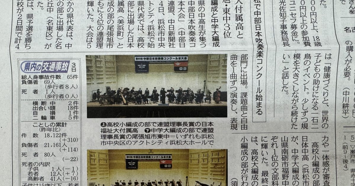 10月4日(土)アクトシティ浜松で行われた中部日本吹奏楽コンクール本大会(東海北陸大会)において、本校吹奏楽部が金賞を受賞し、さらに理事長賞を受賞しました。今年度最後のコンクールとなったこの大会。愛知・岐⾩・三重・静岡・ […]