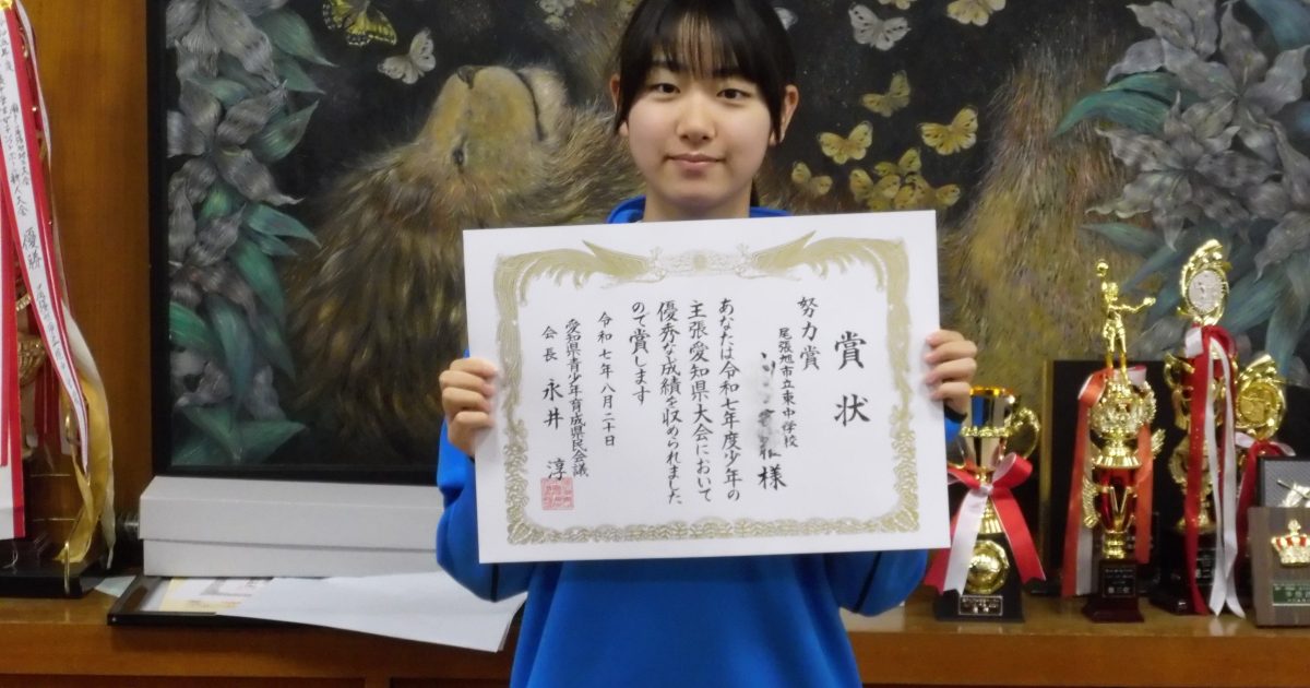 10月1日に第41回名古屋地区中学新人戦陸上競技選手権の表彰がありました。 記録は、 2年女子800m第2位 記録2分22秒33 2年女子1500m第1位 記録4分52秒54 です。男子顔負けの記録ですね。すごいです。