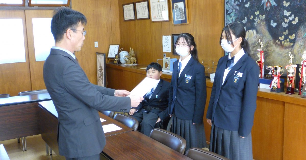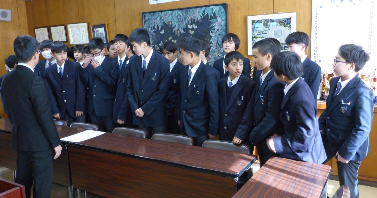1月26日に卓球部の表彰がありました。第24回瀬戸地方中学校ダブルス卓球選手権で優勝、第3位の好結果を収めました。インフルエンザに気をつけて今後も快進撃を続けてほしいです。