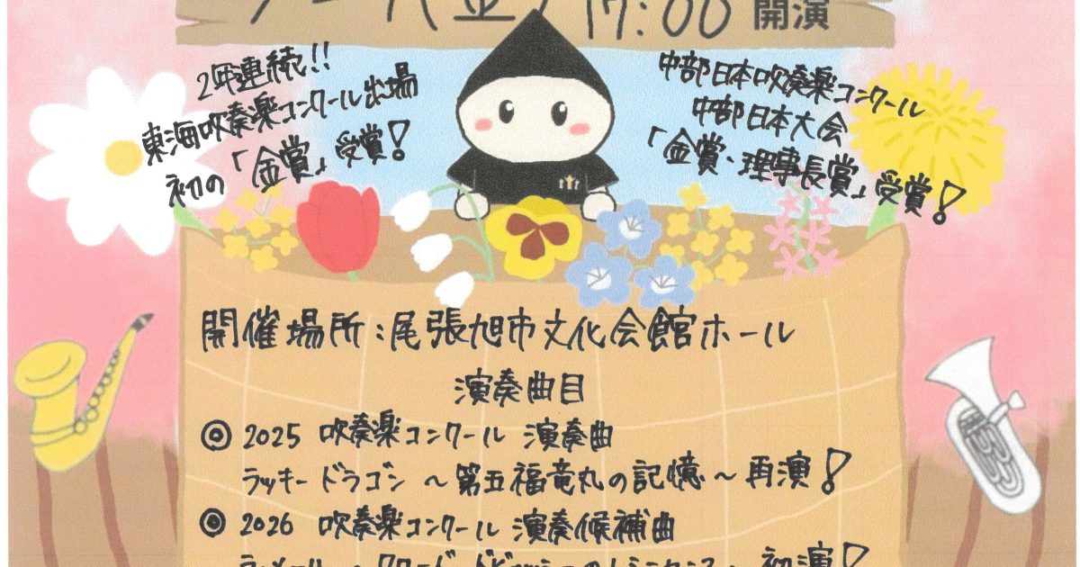 本校吹奏楽部が、3/27(金)、尾張旭市文化会館にてスプリングコンサートを開催します。今年度もたくさんの方に支えていただき、多くの大会で素晴らしい賞をいただくことができました。その感謝の気持ちを込めて、皆様に素敵な音楽の […]