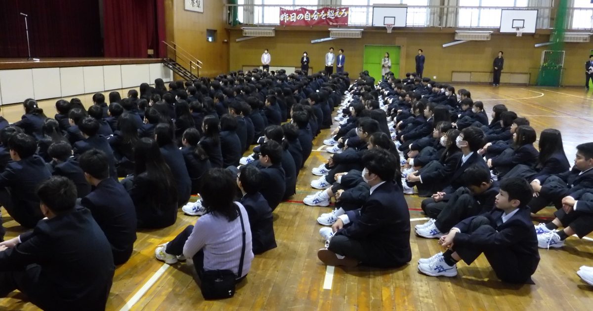 4月10日には歓迎式が行われました。新転任された先生方を紹介し、一言ずつあいさつをしていただきました。その後1年生代表生徒のあいさつがあり、1年生の各クラスにボールが贈呈されました。最後に情報委員会の生徒からタブレットの […]