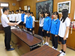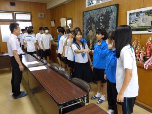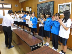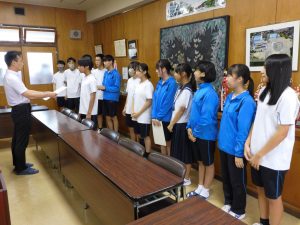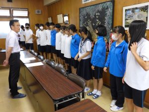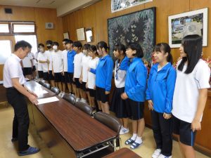 9月22日月曜日に剣道部の中総体の表彰がありました。男女とも愛日大会3位でした。県大会でも健闘しましたね。剣道部はたくさんの大会で表彰状をもらっていますが、3年生の表彰はこれが最後ですね。後輩も頑張っています。あとは任せてください。