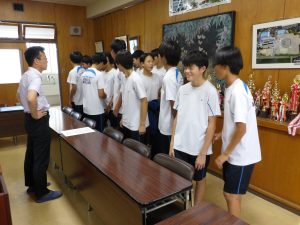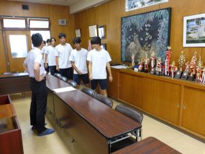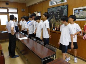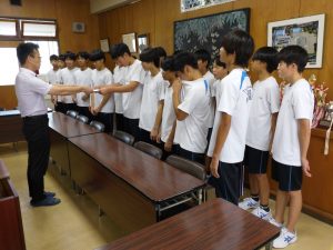 9月22日に剣道部に引き続いて野球部の表彰がありました。現在の監督が引き継いで2年目になりますが、こつこつと根気よく指導した成果が表れてきました。一つ一つのプレーについて、丁寧に指導し、生徒も委縮することなくのびのびとプレーできたと思います。特にバッティングでは、大きな成長を見せました。決して怒鳴ったりせず、冷静に分析し、粘り強く指導する姿は選手ファーストを感じました。新チームはまだまだこれからですが、今後の成長が楽しみです。3年生、よく頑張りました。豪快な野球を見せてくれてありがとう。