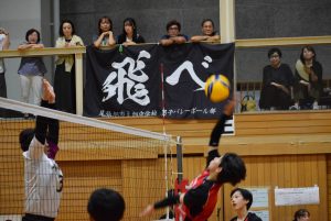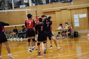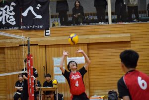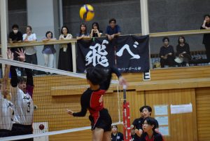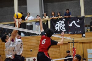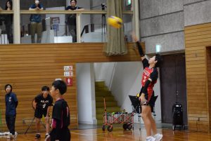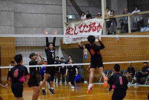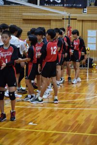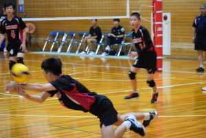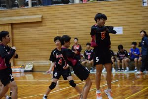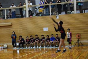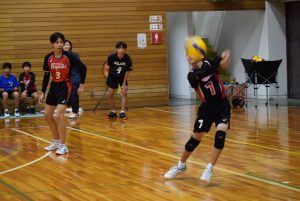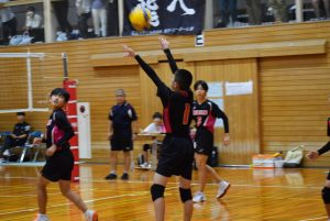 1セット目先取し、2セット目。旭中がミスが少なくなるのと反面、サーブのミスが目立ち始め、シーソーゲームに。