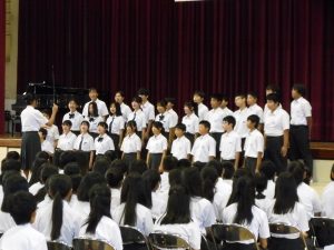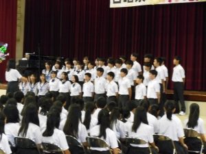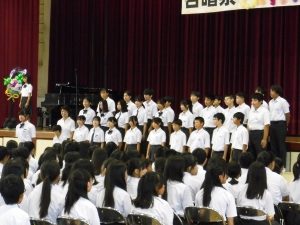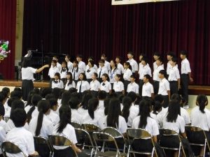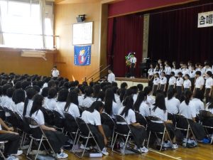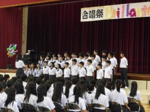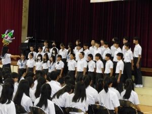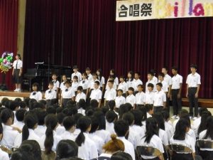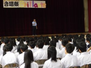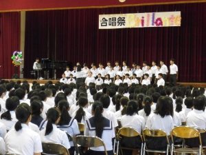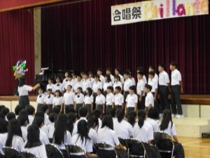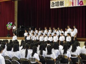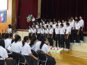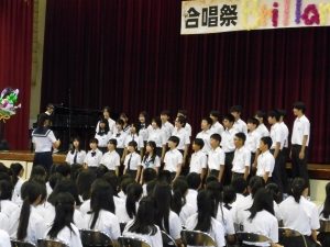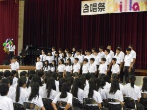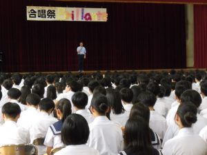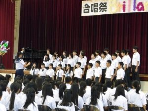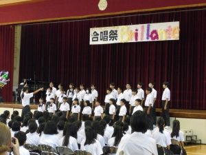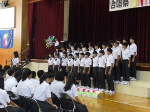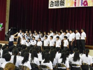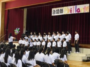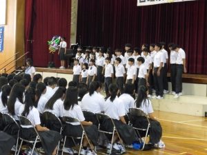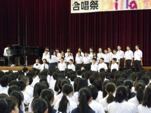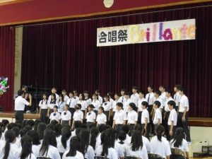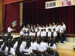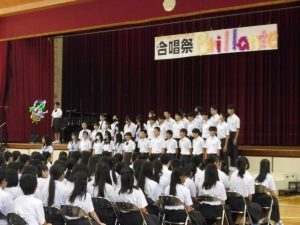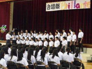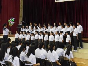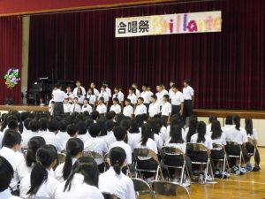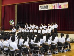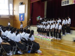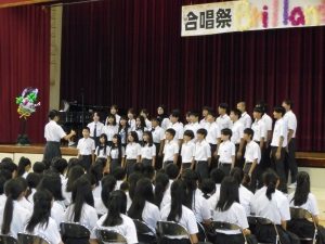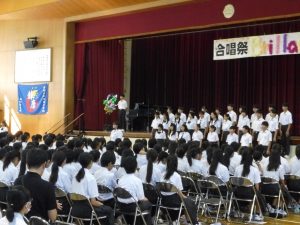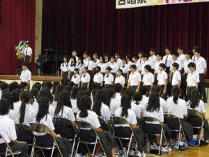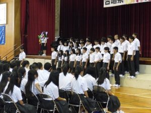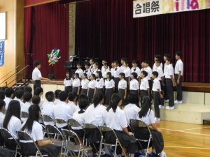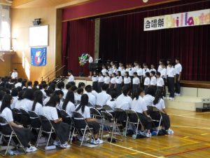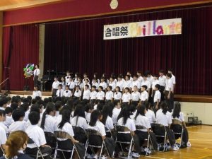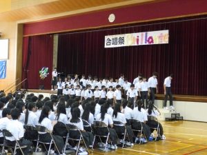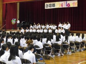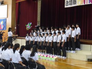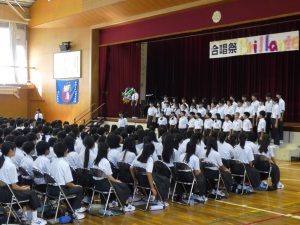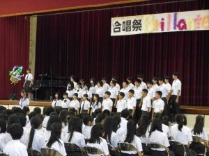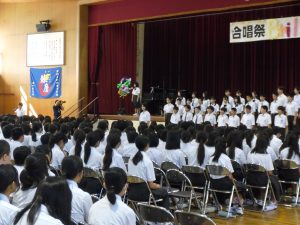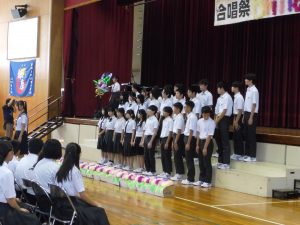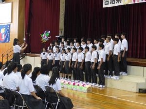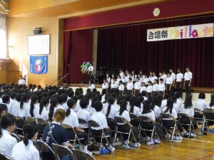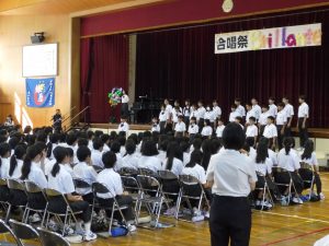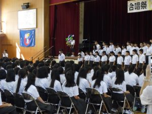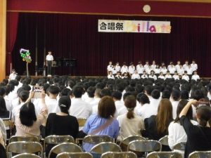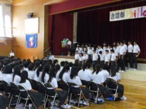 9月30日に合唱祭が行われました。今年度は文化会館ではなく、本校の体育館で実施した関係で、保護者の皆さんにも生で聴いていただくことができました。心配していた暑さも何とかおさまり、50周年にふさわしいものになったと思います。皆さん、素敵な歌声、感動的な合唱をありがとうございました。
