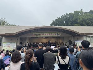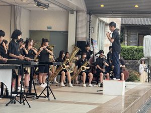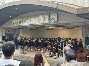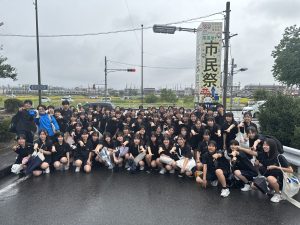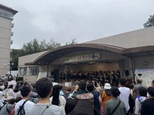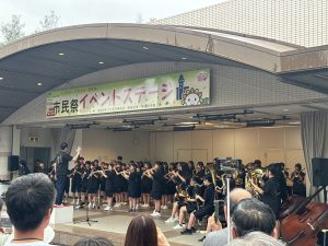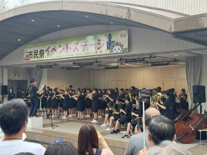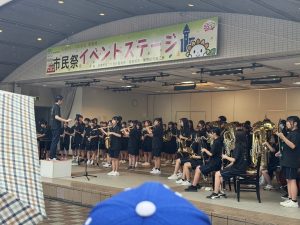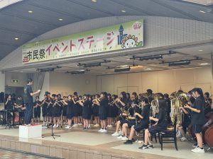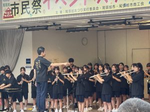 11日(土)、あいにくのお天気でしたが、尾張旭市市民祭が盛大に開催され、本校吹奏楽部がステージ発表を行いました。1週間前が東海北陸大会だったため、練習時間がまったくありませんでしたが、緊張感のあるコンクールとは違って、のびのびと笑顔いっぱいで演奏する部員達の姿が印象的でした。雨の中にもかかわらず、たくさんのお客さんに集まっていただき、時には傘を降ろして、一生懸命に手拍子をしてくださる姿に、胸が熱くなりました。本当に、いつも温かいご声援に、心から感謝いたします。2025東中吹奏楽部の本番も、いよいよ残すところ、26日(日)尾張旭吹奏楽団定期演奏会での3中合同ステージと31日(金)東中学校文化祭の2回となりました。最後まで、支えていただいた皆様への感謝の気持ちを胸に、部員一同、全身全霊をかけて活動してまいります。最後の最後まで、力強いご声援を、よろしくお願い申し上げます。