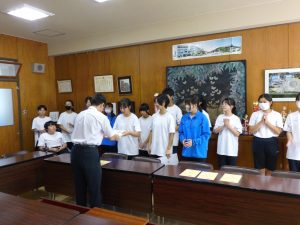 10月9日に美術部の表彰がありました。AZD中学生デザイン・絵画コンテスト2025で個人賞(入選・努力賞)と学校賞をいただきました。いつも熱心に活動し、完成度の高い作品を制作しています。今後の活躍が楽しみです。