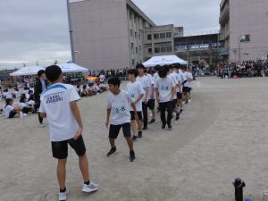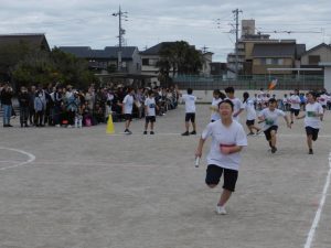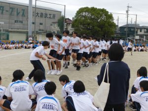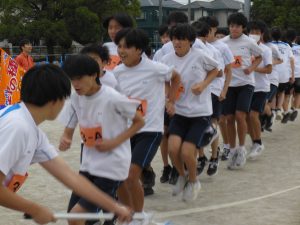 10月24日、予報に反して時折小雨も振りましたが、全力で取り組むにはちょうどいい天候になりました。第50回東中学校体育祭、大いに盛り上がりました。生徒たちは倒れるほどに全力で取り組み、声をからして応援することができました。3年生にとってもとてもよい思い出ができたと思います。縦割りブロックを引っ張る姿は後輩たちに強烈なインパクトを与えたことでしょう。来週は文化祭と50周年記念式典があります。楽しみです。