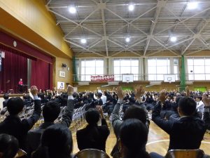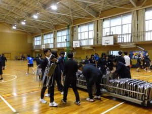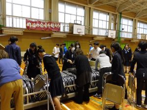 コンサートの終了後は生徒たちが帰りの会をしている間に、先生たちで椅子を片づけていましたが、文化祭委員や生徒会、部活、有志のみんなが駆け付けてきてくれたおかげであっという間に片づけることができました。ありがとうございました。