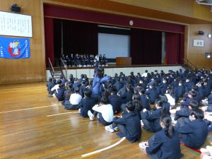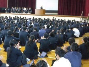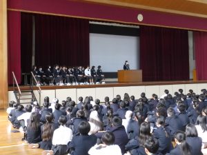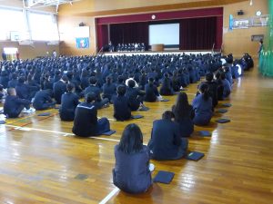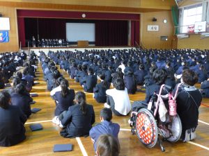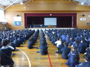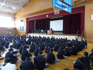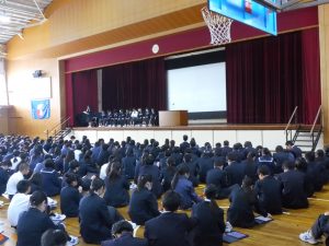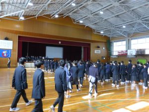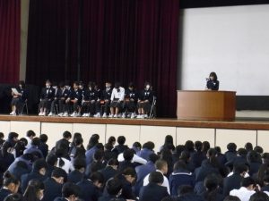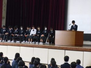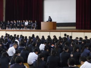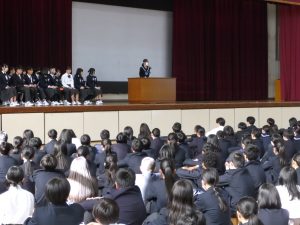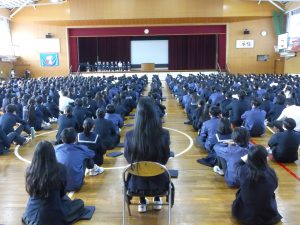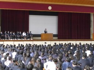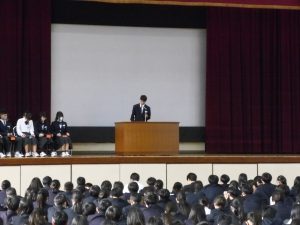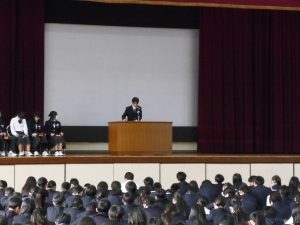 11月27日(木)の4限に生徒総会が行われました。生徒会・各委員会・各学年室長会から後期の活動方針が示され、承認されました。日程の都合で後期の活動期間が短くなってしまいましたが、3年生から1・2年生に引き継ぐ大切な活動になります。1・2年生の皆さん、3年生に成長した姿を見せましょう。