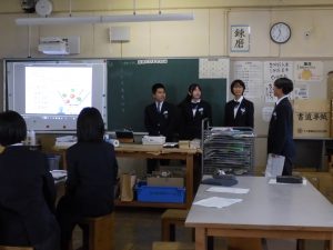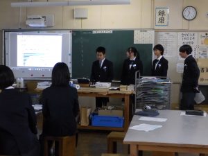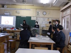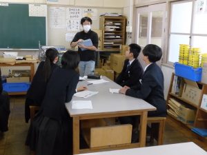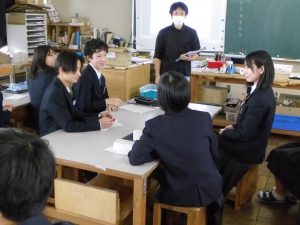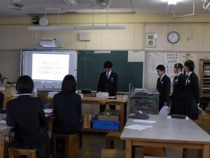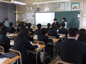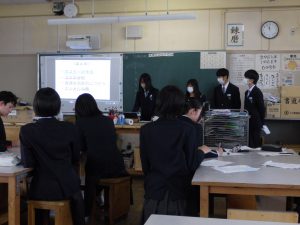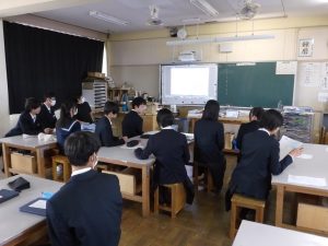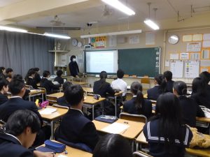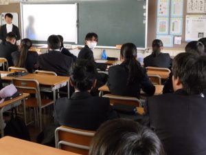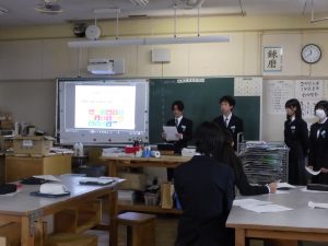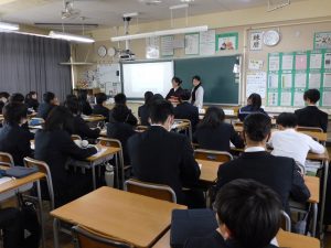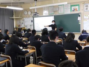11月28日に2年生が「社会人と学ぶ会」を行いました。例年行っている職場体験とは一味違った形で、いろいろな職種から講師の方に来ていただいて、お話を聞きました。業種は①税理士、②システムエンジニア、③絵本作家、④大工、⑤探偵、⑥フォトスタジオ経営者、⑦家具職人、⑧警察官、⑨就労施設&BAR経営者、⑩市役所職員、⑪営業コンサルタント、⑫弁護士と大変多岐にわたっていました。次に「職業人の方とSDGsの課題を解決しよう」と題して、自分たちが作成したプレゼンを使った発表を行い、講師の方から講評をいただきました。プレゼンの準備ではなかなか苦労したようですが、本番ではとても分かりやすく、説得力のある発表がされていました。お越しくださった講師の皆様、2年生の皆さん、先生方、ありがとうございました。