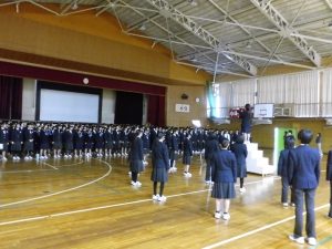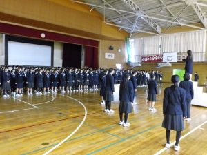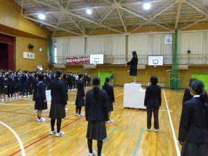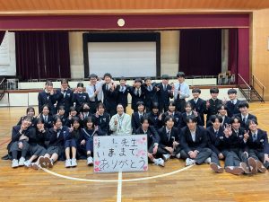 2月12日に一足早い卒業式がありました。担任の先生が産休に入られるため、3年生の生徒がサプライズを企画しました。5限の合唱練習、そして授業後にもサプライズが続きました。名残惜しいですが、あとは生徒の皆さんが残りの学校生活を担任の先生の分まで頑張ってほしいです。〇〇先生!健康第一でお過ごしください。
