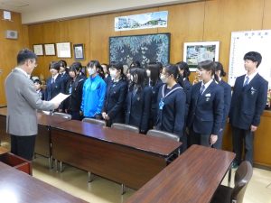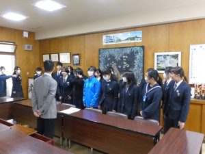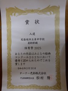 部活動ニュース 美術部員 最後の勢ぞろい! 2026.03.02 by e11mg 0 3月2日に美術部の表彰がありました。「みんなの絵画コンクール2025」で入選に選ばれました。全学年そろっての表彰は最後になります。3年生の皆さんのさらなる活躍に期待します!