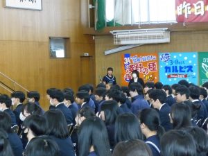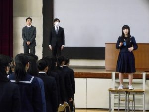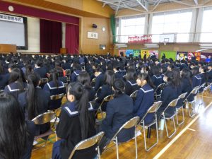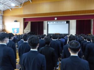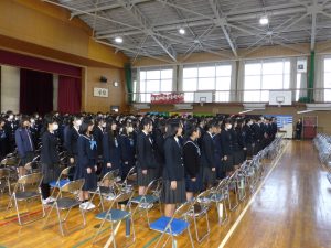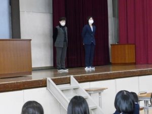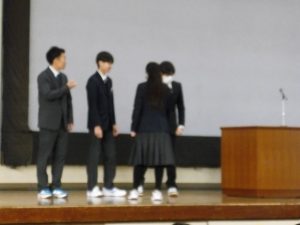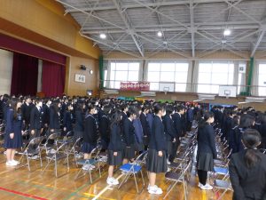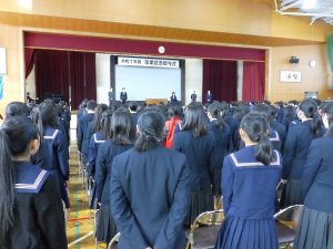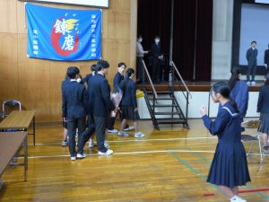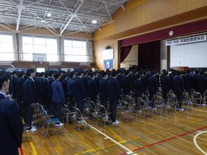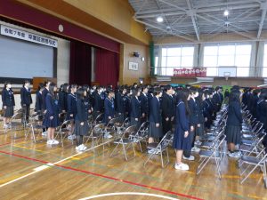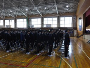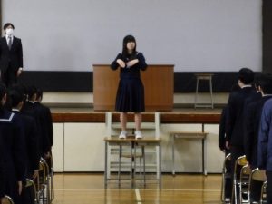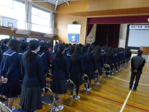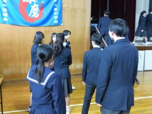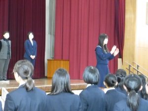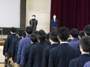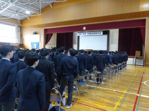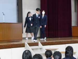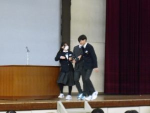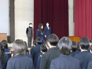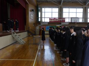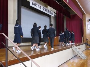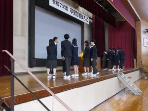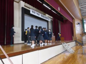 3月5日は同窓会入会式に引き続き、3年生のみの練習、2年生を加えての予行練習が行われました。1限の練習の終わりに3Hの男子が「ちょっと待った」と叫び、学担の先生方がステージ上に案内されました。いつの間にか式台と花束が用意され、サプライズ合唱が行われました。思いもよらない展開でしたが、本当に感動的でした。素晴らしいシーンを見せてくれてありがとうございました。明日も楽しみにしています。