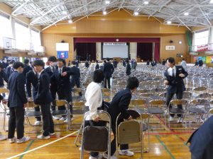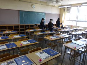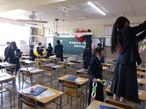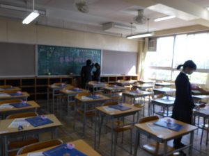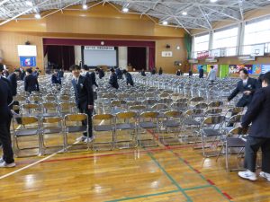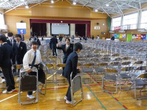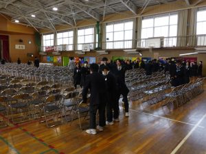 おはようございます。卒業式当日になりました。昨日は3年生が帰った後、在校生が準備をしてくれました。あとは心を込めて送り出しましょう。