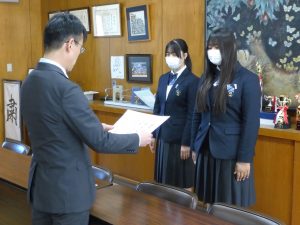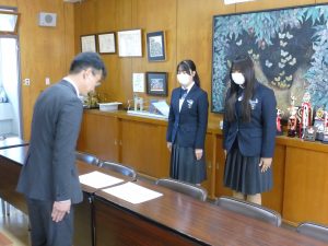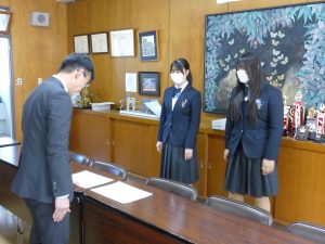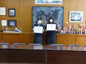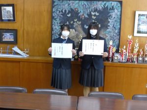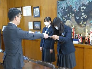 3月12日に弓道部の初段・弐段合格者の表彰がありました。弓道部は県大会にも出場します。活躍に期待します。