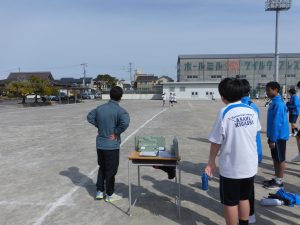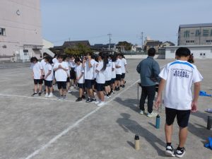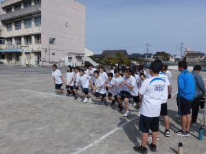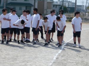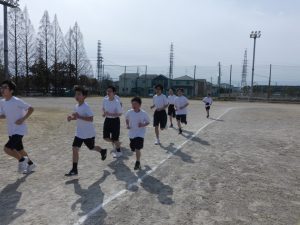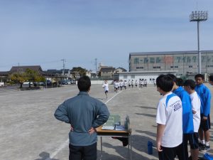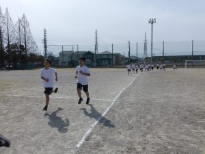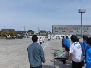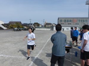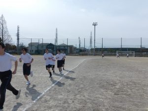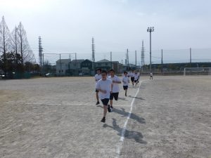 現在、1年生は体育で持久走をしています。距離の関係で男女別にタイムを計っていますが、お互いに声をかけ合ってとてもいい雰囲気でした。担当の先生もコースを反対に走りながら声をかけていました。男子で1位になった生徒はラストスパートで靴が脱げてしまったにもかかわらず最後まで走り切り、好タイムを出すことができました。素晴らしい!