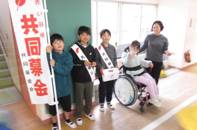 今日と明日の2日間、赤い羽根共同募金をやっています。写真は今朝の様子ですが、多くの児童が小銭を握りしめて、登校する姿がありました。「誰もが幸せに暮らすために」を心に明日も募金活動やっています。