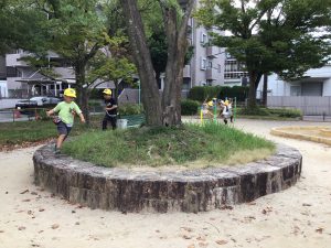 9/29(月)に生活科の学習として、白山第二公園へ行きました。公園には、落ち葉やどんぐり、虫などたくさんの秋がありました。落ち葉の雨を降らしたり、どんぐり拾いをしたり秋の遊びをしました。遊具や公園の使い方も再確認でき、実りある学習ができたと思います。