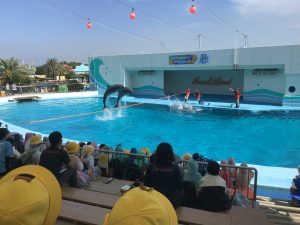 イルカショーでは一緒に体を動かしながら大迫力のショーを楽しみました。