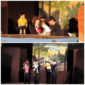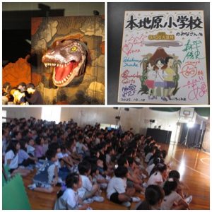 芸術の秋。今日は、人形劇団「ひとみ座」の皆さんをお招きし、低学年と高学年の2部構成で、人形劇「9月0日の大冒険」を鑑賞しました。人形とは思えない躍動感のある動きに目が奪われ、迫力ある恐竜や動物たちの動きに「すごーい!」と歓声をあげる子どもたち。団員のみなさんの巧みな話術に心動かされた子も多かったようです。人形劇のすばらしさを体感することができたようです。