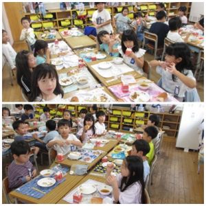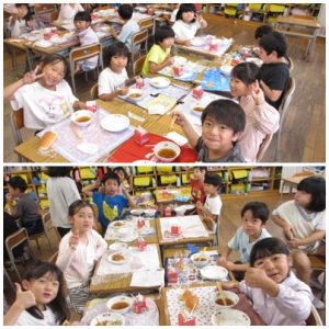 1年 たのしい給食(1年生) 2025.10.15 by e04mg 0 給食のようすです。今日の献立は、ミルクロールパン、牛乳、やきそば、ツナサラダ、コンソメスープ。教室をのぞくと、「パン、だいすき!」「やきそば、おいしいよ!」と教えてくれました。 今日もみんなで楽しく、おいしい給食をいただきました。