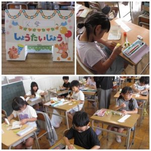 2年 運動会に向けて(2年生) 2025.10.17 by e04mg 0 学級活動の授業では、「うんどう会の しょうたいじょうを つくろう」をめあてに、かわいらしいカードに出演時間や場所、そしてお家の方へのメッセージを書いていました。思いを込めて作った招待状。しっかりとお家の方に届けましょうね。