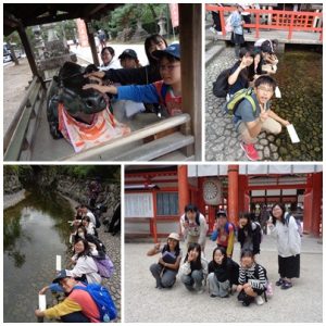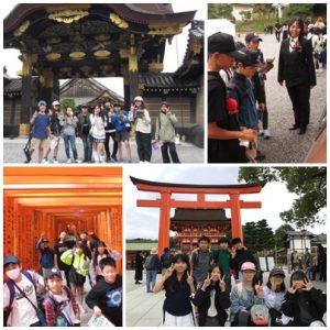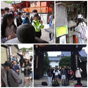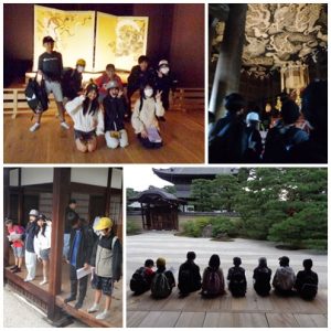班ごとにジャンボタクシーで京都市内を探検に出かけました。訪問先は自分たちで決めて、タブレット端末を使って訪問順も計画しました。二条城、北野天満宮、下鴨神社、伏見稲荷、京都御所、銀閣寺、建仁寺、三十三間堂など、教科書に出てくる有名な場所ばかり。