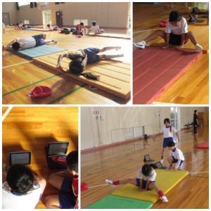 最後は、体育の授業。今日は体育館でマット運動に挑戦しました。マット運動には日常生活にない動きがたくさんあります。横向きにゴロゴロと回ったり、でんぐり返しをしたりと頭と体をフル回転して運動しています。友だちとタブレットを使って技のポイントを確認しながら挑戦する姿がありました。運動の秋、たくさん体を動かしてほしいなと思います。