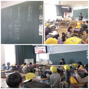 22つの通学団がある本地原小学校。毎日、上級生を先頭に交通安全に注意しながら登下校をしています。今日は3回目の通学団会が開かれ、改めて集合場所と集合時刻の確認や、危険個所がないかなどの確認を担当の先生やスクールガードの皆さんと一緒に行いました。本校では、今のところ大きな事故は行っていませんが、引き続き未然に防ぐことができる事故やけがは起こさないように、登下校や校外での生活ルールを守っていきましょう。スクールガードならびに地域の皆さま、いつも登下校の見守り活動、本当にありがとうございます。