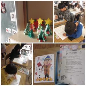 また、冬休みを前に冬休みの過ごし方などを担任の先生と確認する学級もありました。冬休みの日誌も配られ、その取り組み方の説明もありました。学習面は2学期に学習した内容のふり返りを、生活面では学校に通っていたときと同じように規則正しい生活を心がけてほしいなと思います。明日はいよいよ終業式です。2学期をふり返りながら、よい締めくくりを子どもたちとしたいと思います。