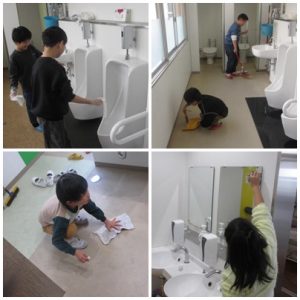 今日も子どもたちは当たり前のようにしっかりと掃除に取り組んでいます。「なんで掃除ってするの?」と子どもたちから聞かれることがありますが、「教室やトイレなど使っているところをきれいにすると、一緒に生活するみんなが過ごしやすくなるからだよ。」と答えています。