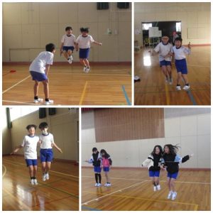 5年生体育の授業では、なわ跳びに取り組んでいます。「一人で跳ぶことが多いですが、では二人で跳べるかな?」と先生からの課題に、子たちはタイミングを合わせ、二人で協力してなわを跳び越える姿がありました。音楽の授業では、たくさんの楽器を使って合奏に挑戦しています。曲は「千本桜」。みんなでテンポを合わせることが難しいようです。周りの友達の音をよく聴いて、合わせようと努力する姿がありました。